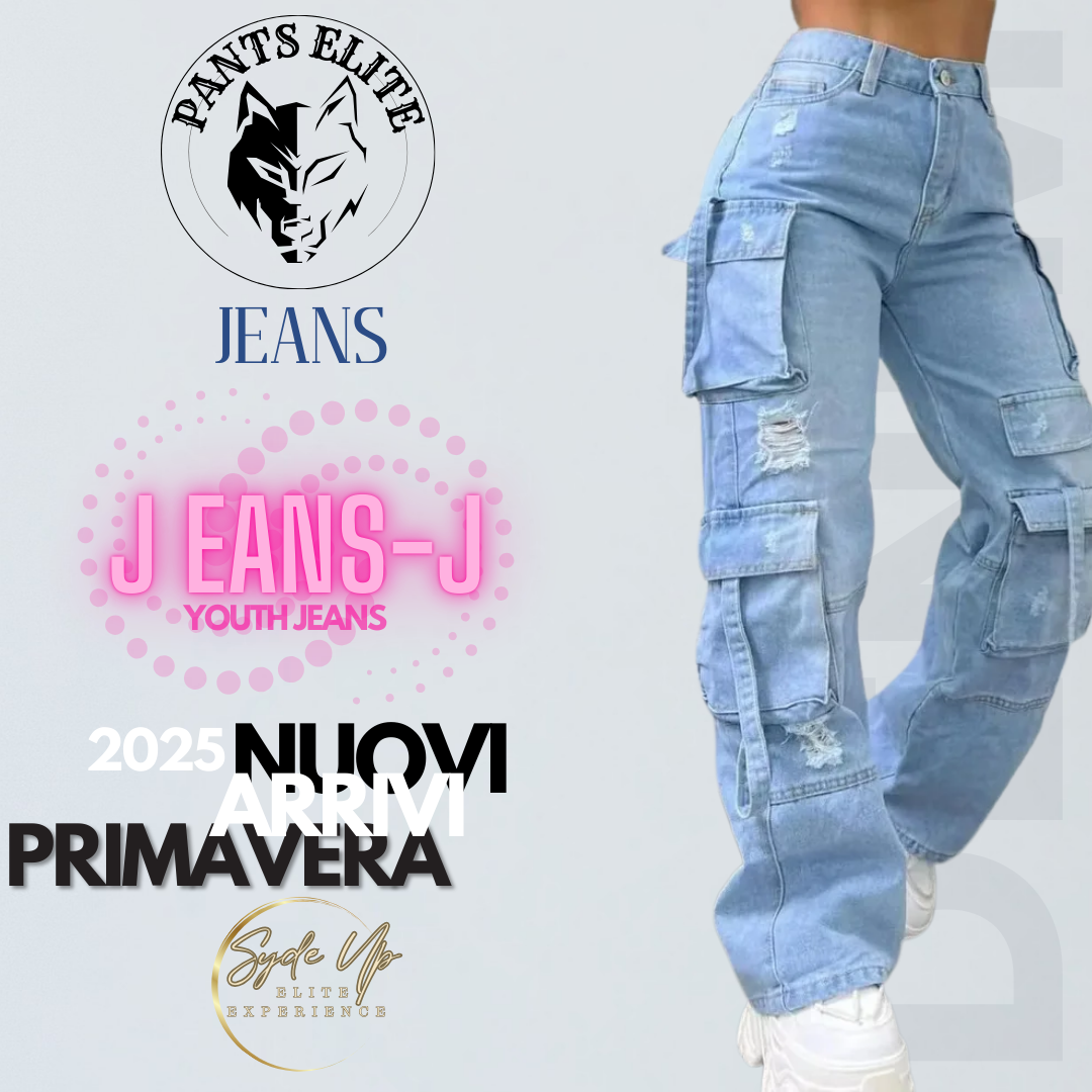 Un must-have per i giovanissimi! I "J EANS-J" sono jeans in denim disponibili in due tonalità: chiaro e scuro. Caratterizzati da uno stile cargo con tasche ampie e strappi decorativi, sono perfetti per un look streetwear audace e contemporaneo. Ideali per chi ama distinguersi con stile! 👖✨