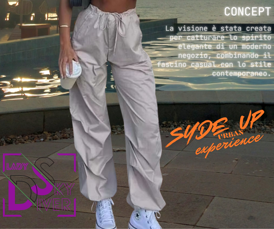 LADY SKY DIVER - Pantalone Cargo Paracadute Moda Donna Vintage